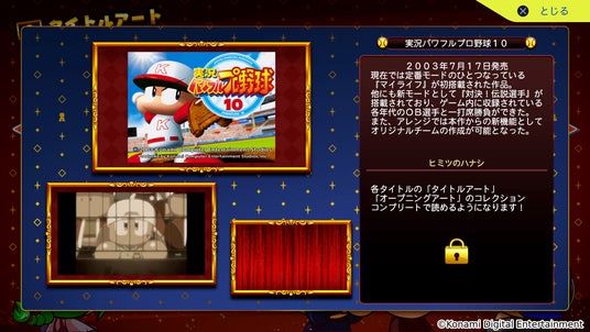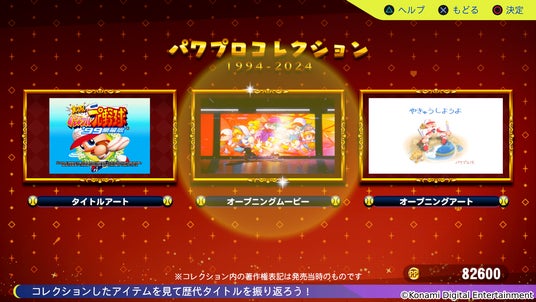 パワポイントを集めて歴代タイトルのタイトルアート、オープニングムービー、オープニングアートをゲットし、「パワプロ」の歴史をコレクションしましょう!コレクションは閲覧だけでなく、タイトル画面として設定したり、再生したりすることができます。