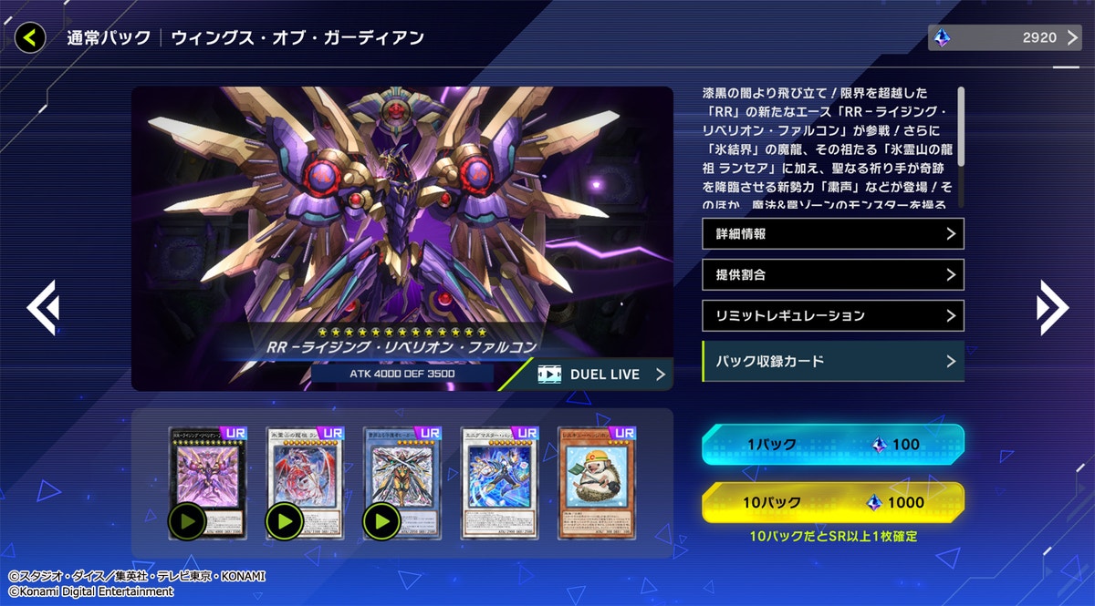 また、新たなセレクションパック「ウィングス・オブ・ガーディアン」も8月8日(木)より追加しました。「ウィングス・オブ・ガーディアン」は、新テーマ「粛声」に加え、「RR」「氷結界」テーマのカードなど、デッキ強化に役立つカードを多数収録しています。