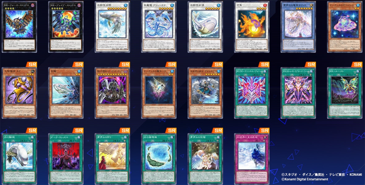 さらに「氷結界」の魔龍、その祖たる「氷霊山の龍祖 ランセア」に加え、聖なる祈り手が奇跡を降臨させる新勢力「粛声」などが登場!その他、魔法&罠ゾーンのモンスターを操る「エニグマスター・パックビット」など、無二の力を持つカードが多数参戦!天壌無窮の翼で反逆し、勝利を掴み取れ!