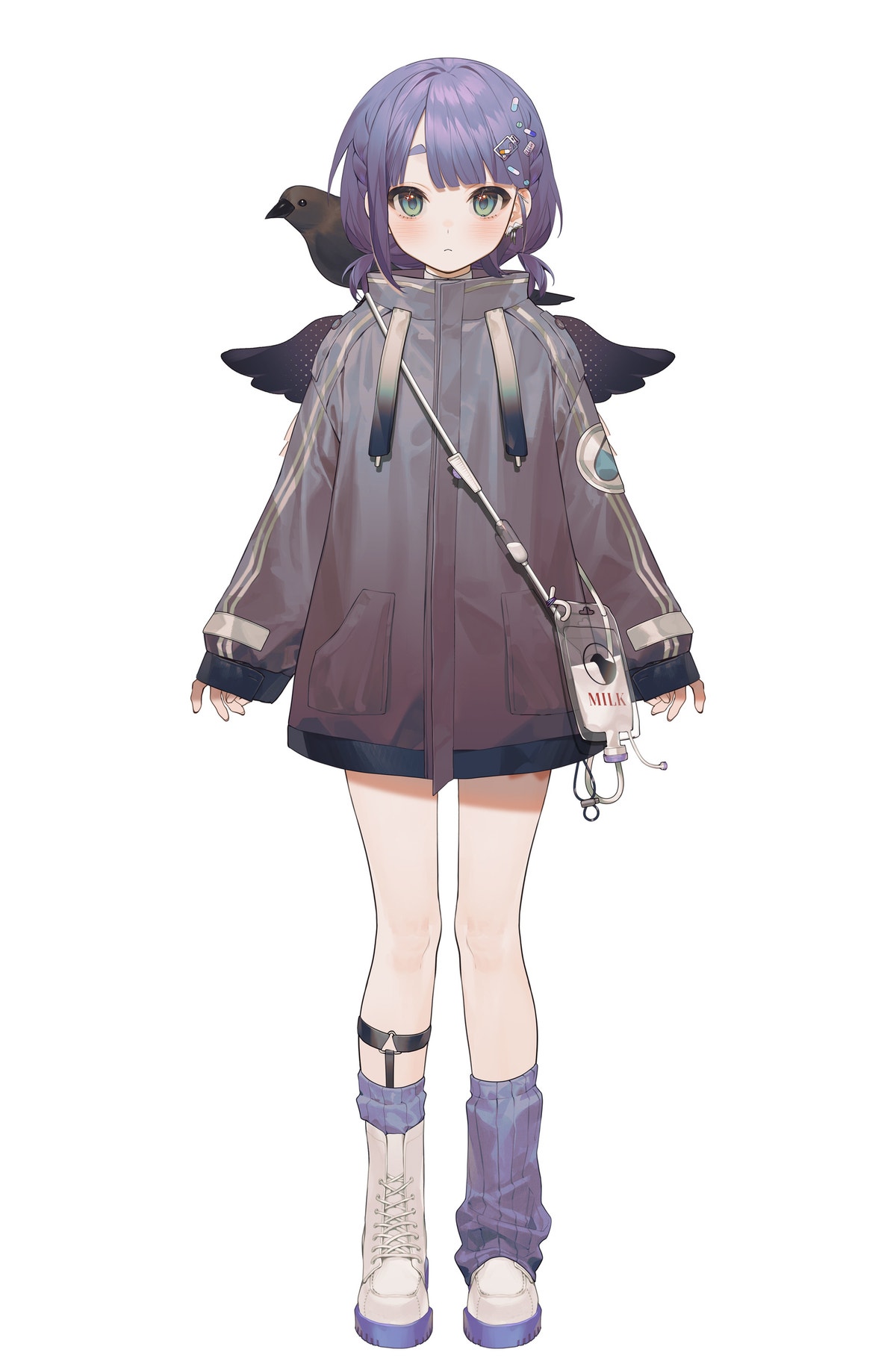 口数が少なくおとなしい性格。肩に乗っているカラスは正反対の性格をしている。