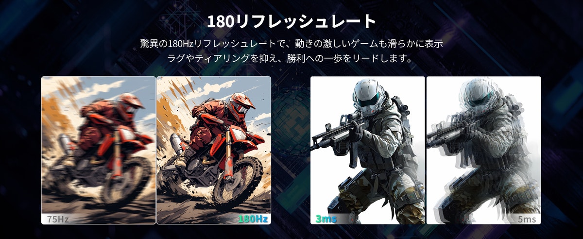 ハイスピードなアクション - 180Hzリフレッシュレートと1msの応答速度