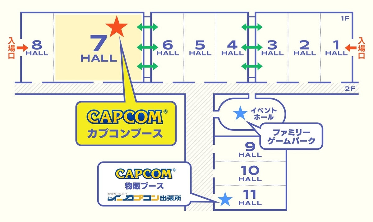 カプコンブースなどの場所は、以下の地図で確認しよう!