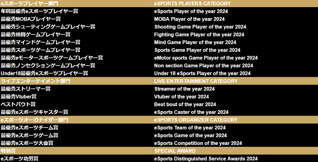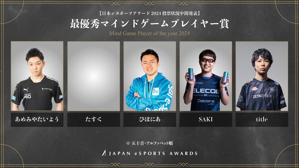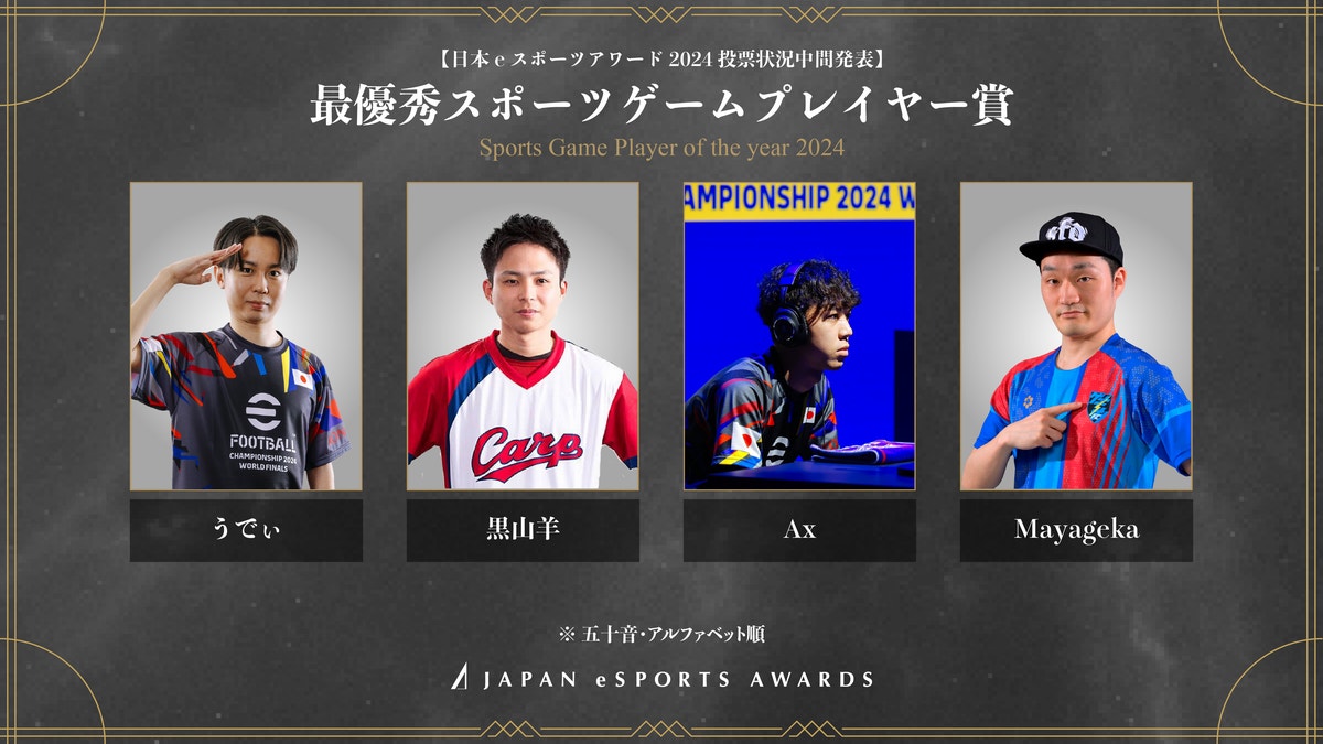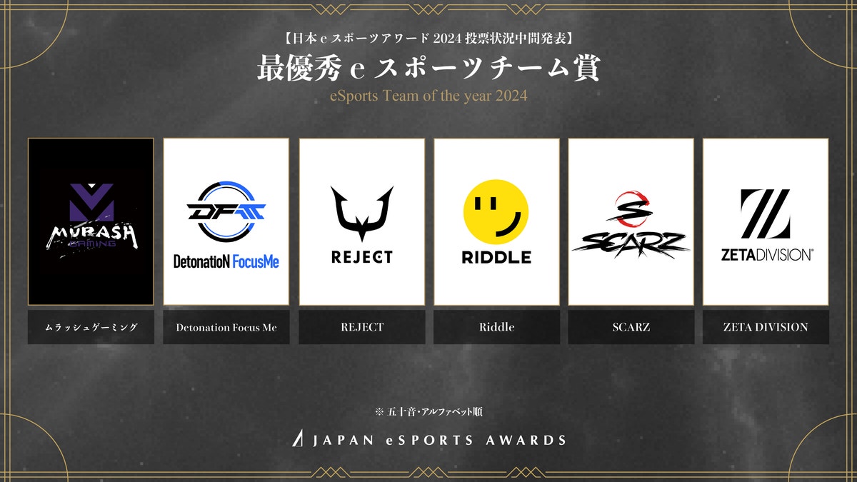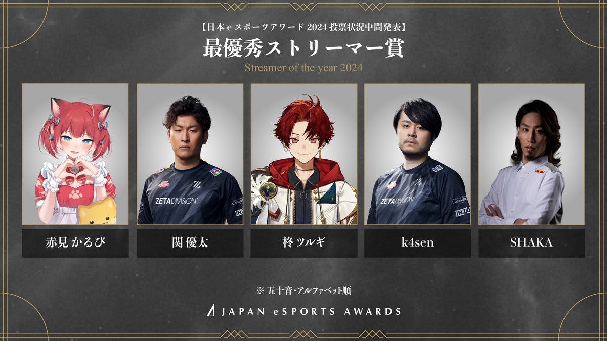 2025年1月15日(水)に開催される年に一度の祭典「日本eスポーツアワード2024」に先駆け、ファン投票が2024年9月1日(日)より受付中。中間発表が公開された。