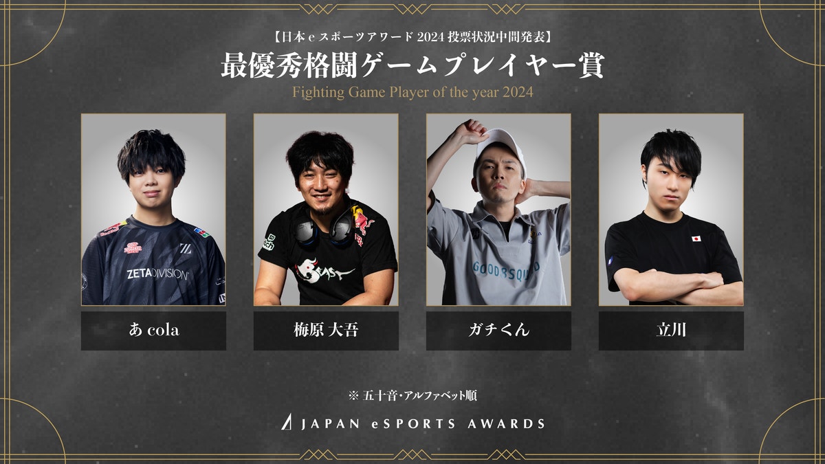 【日本eスポーツアワード2024】あcola、Evi、Lazなど昨年の受賞者に加え新たなプレーヤーも!——ファン投票の中間発表が公開