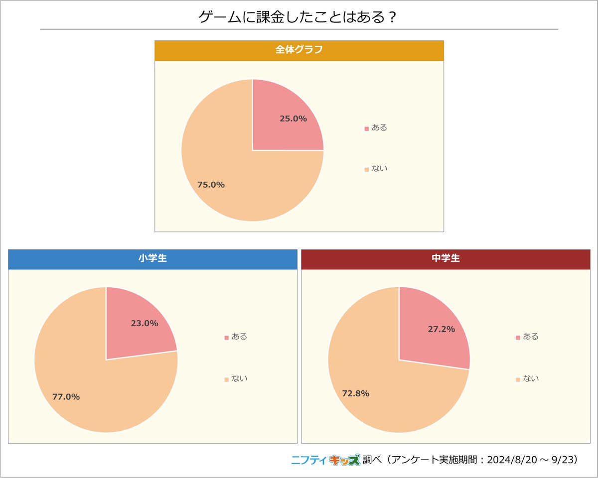 25%の子どもたちがゲームに課金したことがあると回答しました。