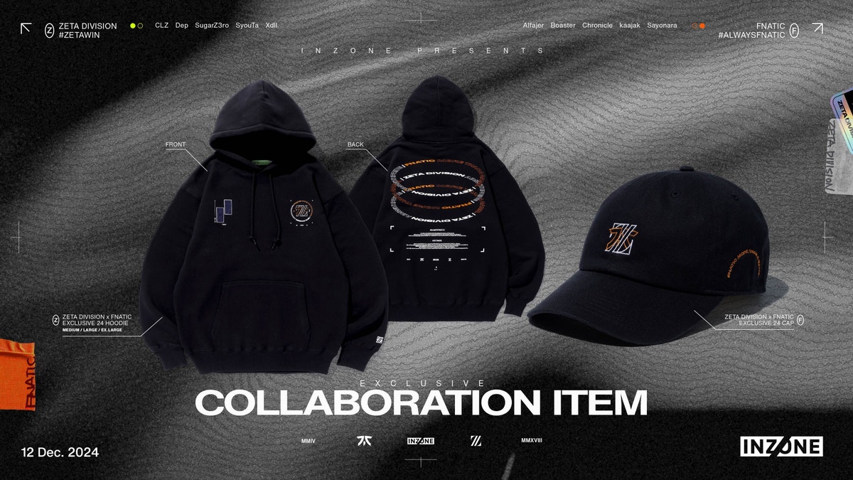 本イベントを記念して、ZETA DIVISIONとFnatic、そしてINZONEのコラボアパレルを販売いたします。イベント会場での先行販売の後、ZETA DIVISION STOREにてオンライン販売を予定しております。