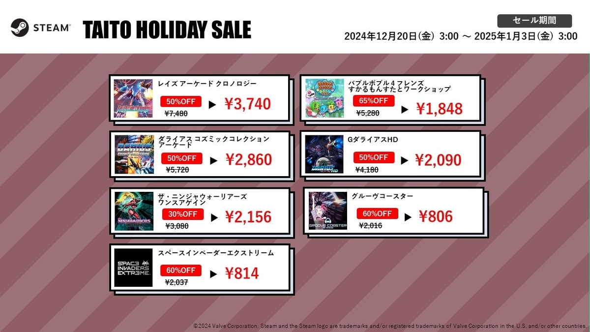 【最大80%OFF】「ダライアス」シリーズや「パズルボブル」シリーズがお得!——タイトーホリデーセールが開催中!