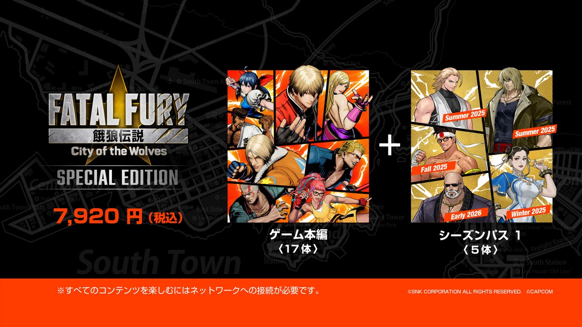 シーズンパス1のDLCキャラクターとして、『ストリートファイター』シリーズの「ケン」と「春麗」に加え、『餓狼伝説』シリーズの「アンディ・ボガード」と「ジョー・東」、さらに『龍虎の拳』シリーズの「Mr.ビッグ」の参戦が決定!ゲーム本編とシーズンパス1がセットになった「SPECIAL EDITION」で登場!ただ今、予約受付中です!