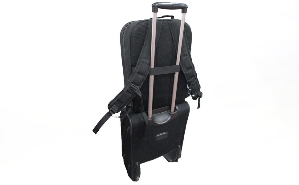 ・リュックをスーツケースに装着できる大型バンドを搭載。
