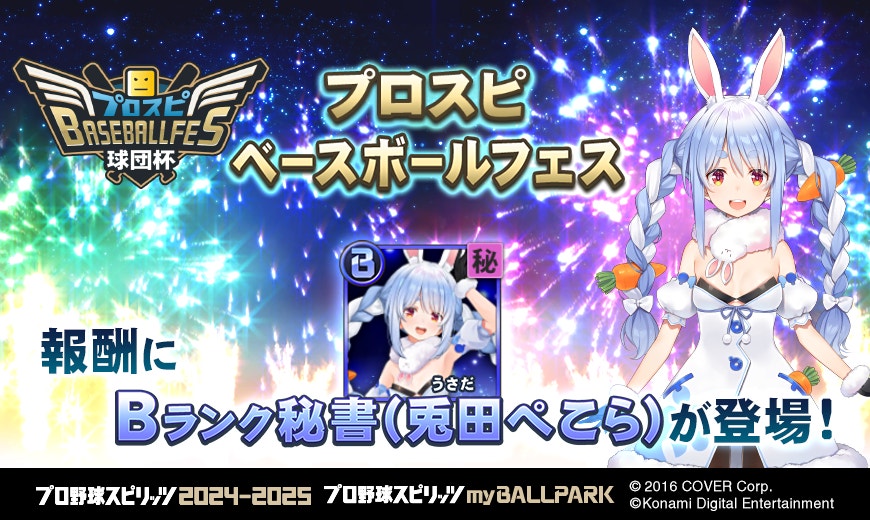 「プロスピベースボールフェス」にエントリーして、累計試合数でBランク秘書(兎田ぺこら)を獲得しよう!