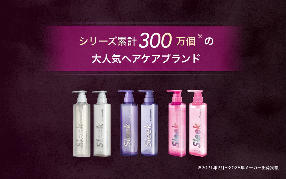 スリークは、カラーやヘアアイロンなどによる日常的なダメージをケアし、美しいツヤ髪へと導くヘアケアブランドです。 「補修しながら洗う」ケラチン系洗浄成分や、熱から守るヒートプロテクト成分を配合し、毎日の積み重ねで髪のコンディションを整えます。 こだわりの成分と洗練されたデザインで、髪も気分もリセットできるようなバスタイムをお届けします。