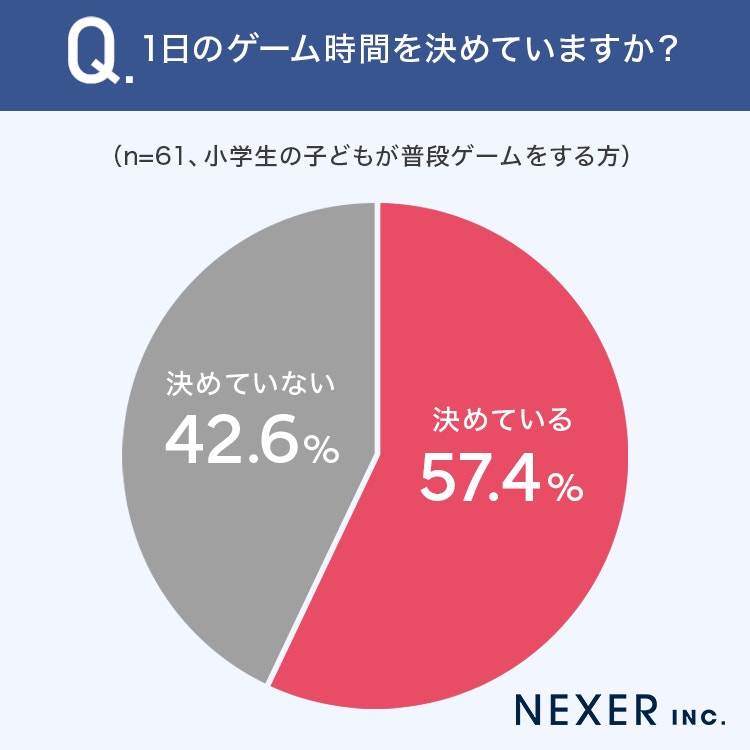 - 57.4%が「1日のゲーム時間を決めている」