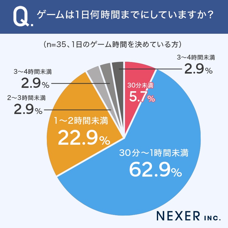 - 62.9%がゲームは1日「30分~1時間未満」と決めている
