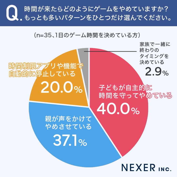 40%の方が「子どもが自主的に時間を守ってやめている」と回答しています。