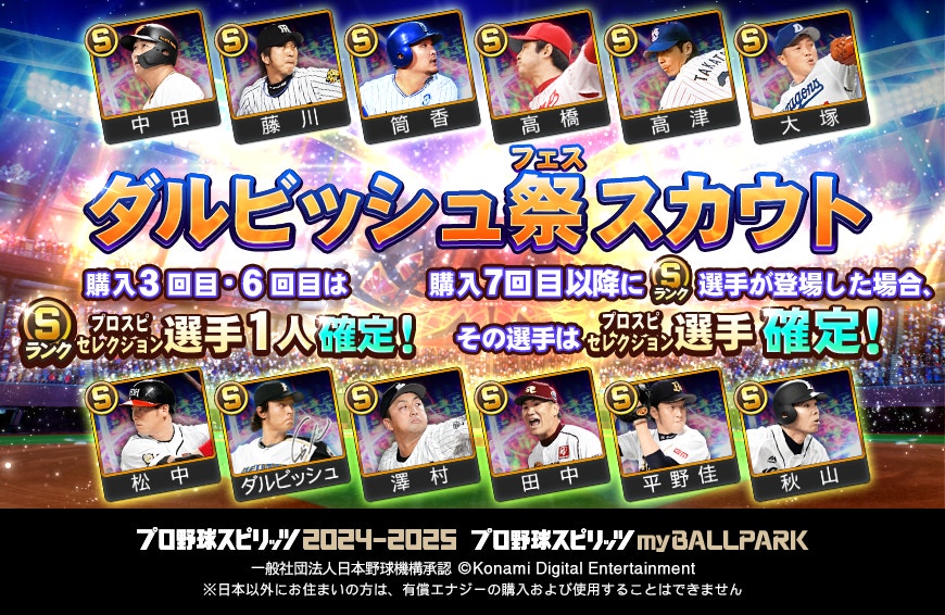 株式会社コナミデジタルエンタテインメントは、発売中の家庭用ゲーム『プロ野球スピリッツ2024-2025』(PlayStation®・Steam®対応)の球団経営モード「myBALLPARK」で、ダルビッシュ有選手とのコラボレーションイベントを本日7月22日(火)からスタートしたことをお知らせします。