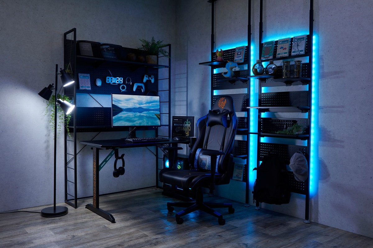 ルーム4.「high performance playroom」では、長時間のゲームプレイも疲れにくい高機能チェアと、作業スタイルに合わせて高さ調節できる電動昇降デスクを展示、ニトリおすすめの高性能家具を体験していただけます。座り心地や操作性にもこだわり、快適性と機能性を追求したラインアップで、パフォーマンスにこだわるゲーマーをサポートします。