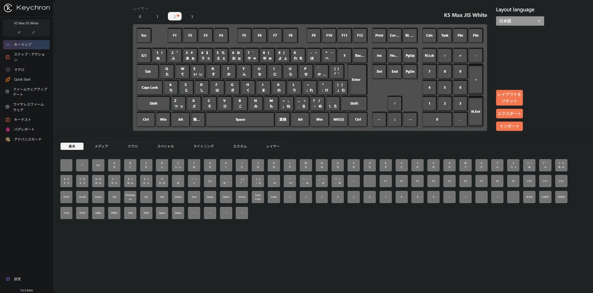 Keychronの大きな特長の一つは、ダウンロード不要・アップデート不要で使えるウェブベースのキーボード設定ソフトウェア。MacおよびWindowsに対応しており、誰でも簡単にキーボードをカスタマイズでき、この手軽さと対応力は、他のメーカーにはない強みとなっています。