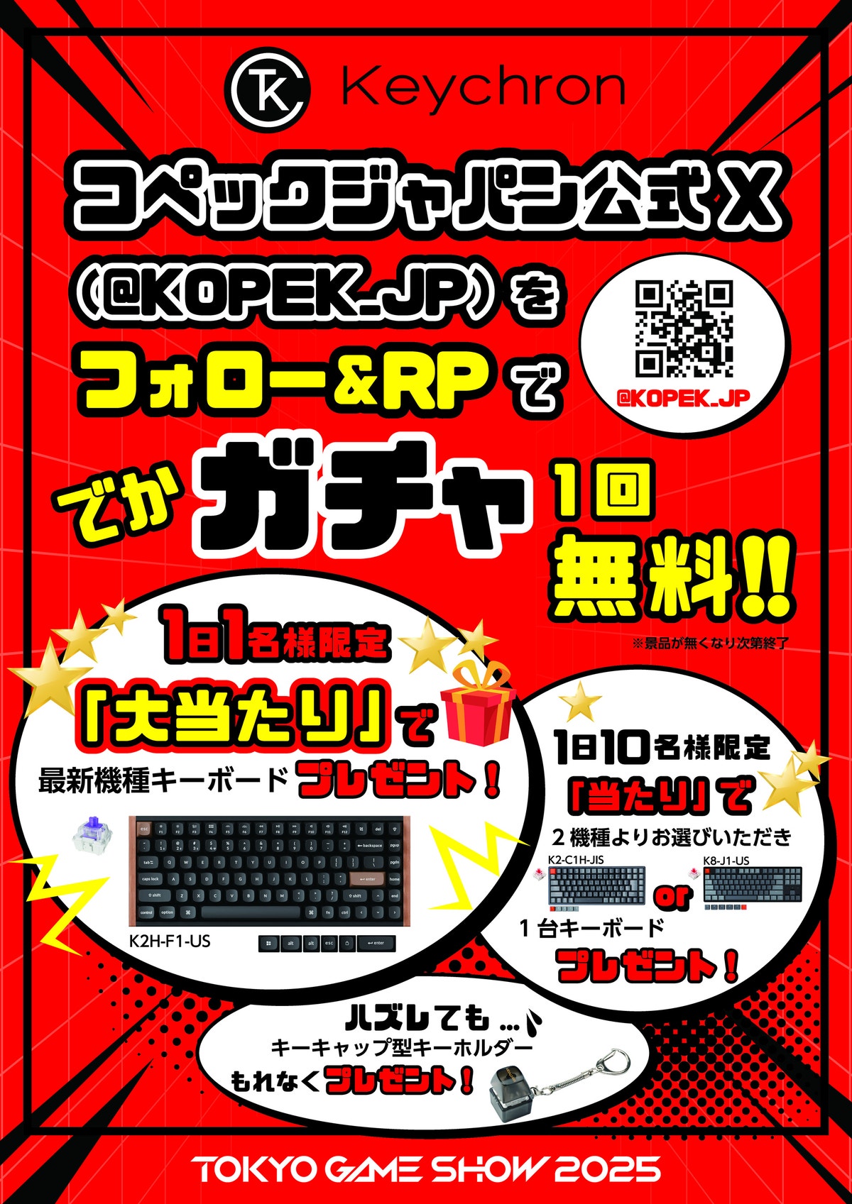 株式会社コペックジャパン(本社:東京都渋谷区)は、2025年9月25日(木)~9月28日(日)に千葉県の幕張メッセで開催される、日本最大級のゲームの祭典「東京ゲームショウ2025」に、同社で取り扱うメカニカルキーボードブランド「Keychron」として出展いたします。