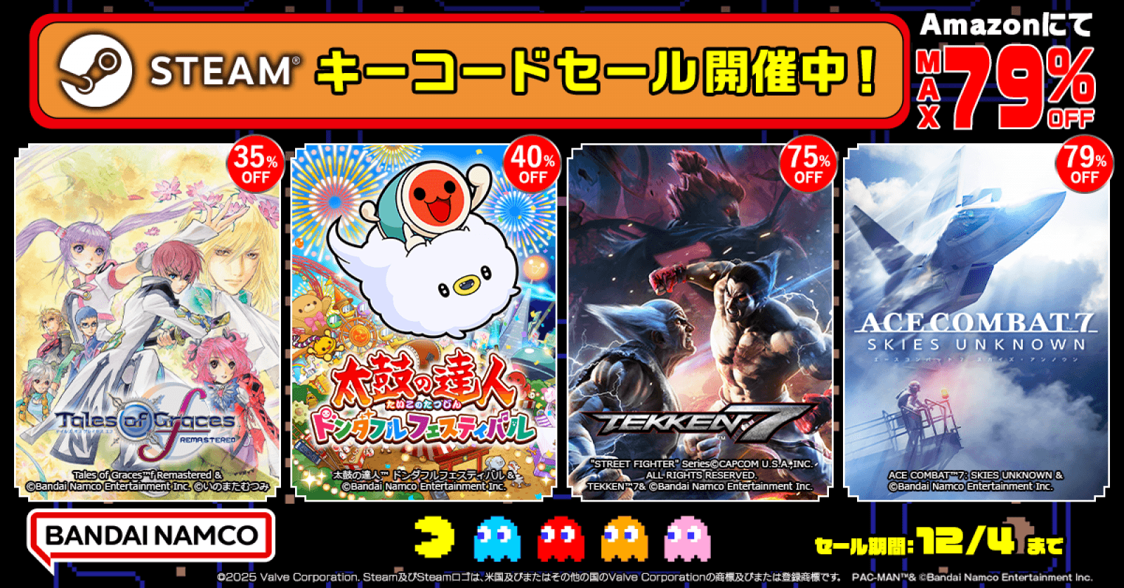 株式会社バンダイナムコエンターテインメントがAmazonにてSteamキーコードセールを開催したことをお知らせいたします。