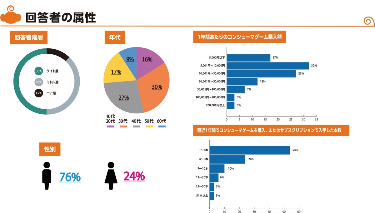 猿楽庁が無料対面セミナー「サルガクチョウサ発表会」を11月26日(水)に開催。コンシューマゲームのプレー状況やモバイルゲーム市場における課金状況など一部の調査結果が公開されている。