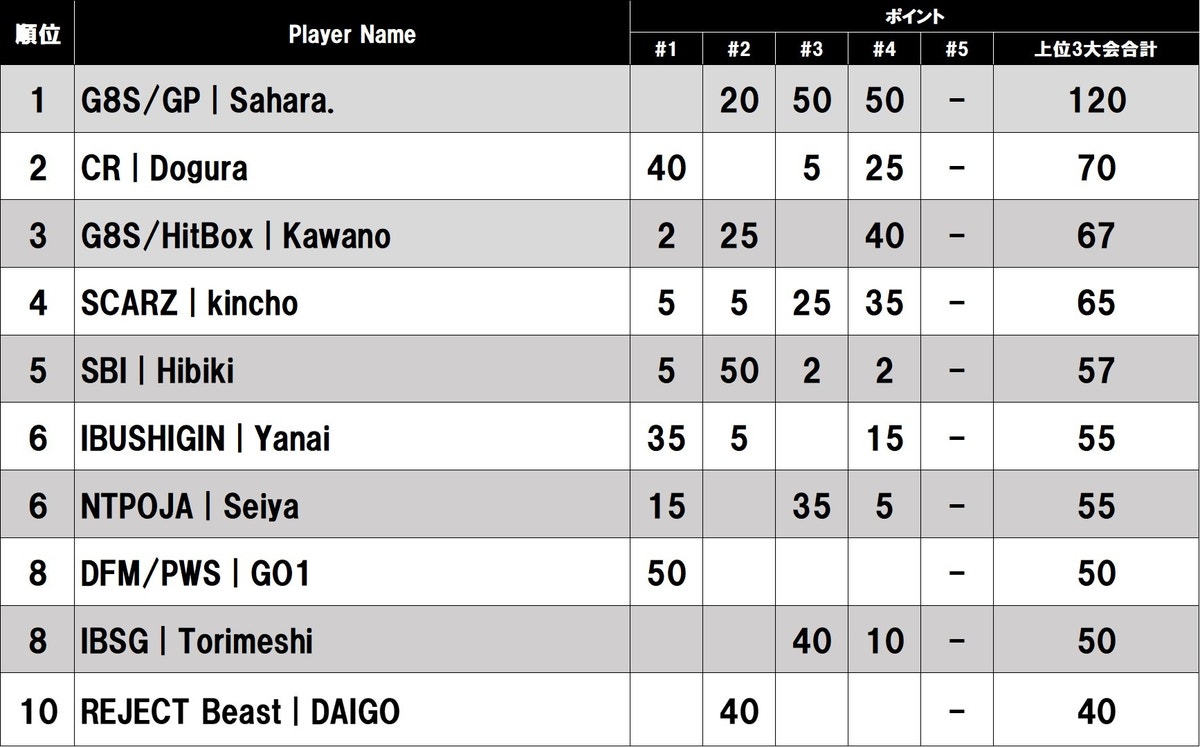 獲得上位3ポイント順位※第4回大会終了時点