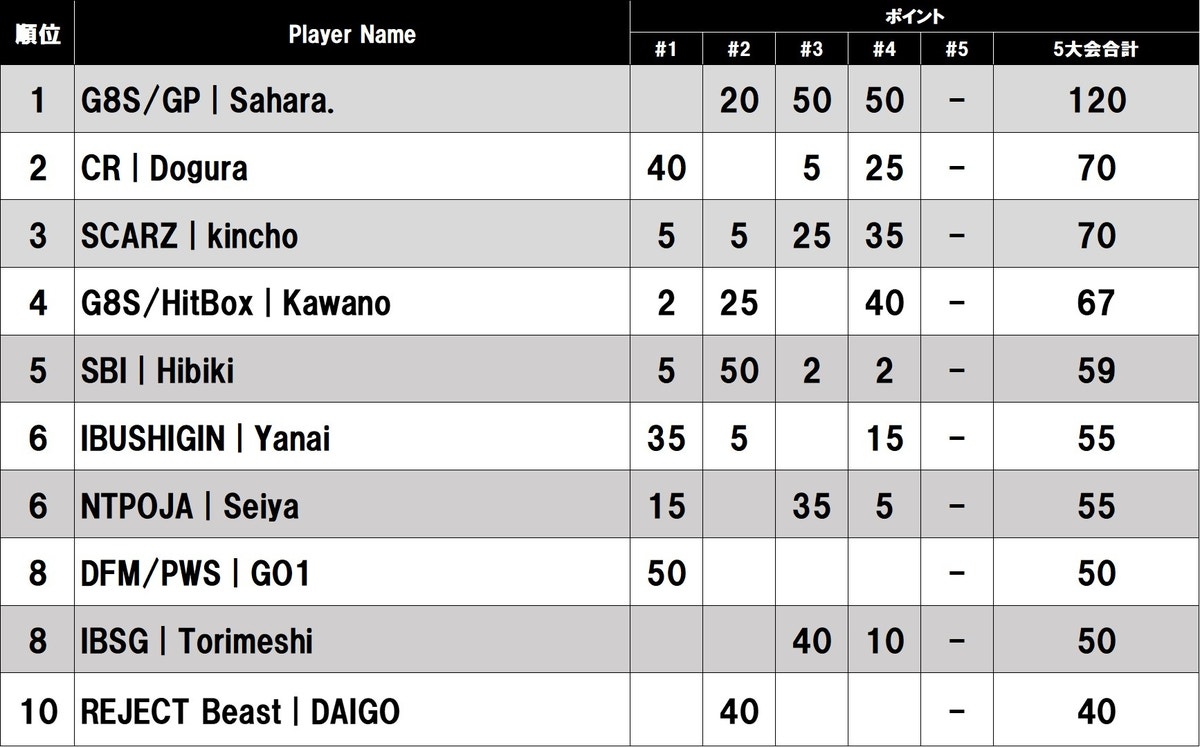獲得合計ポイント順位※第4回大会終了時点