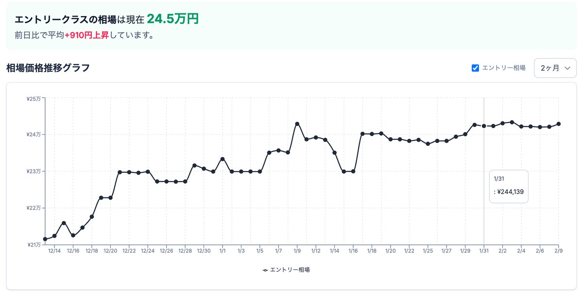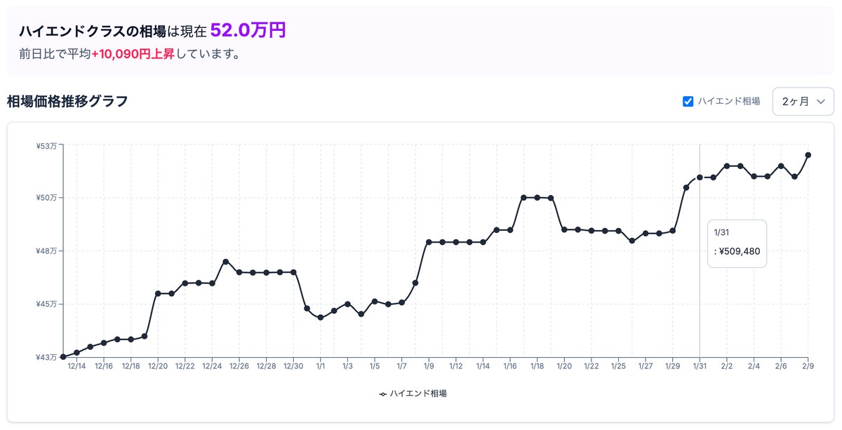 エントリークラスおよびミドルクラスでは、月後半にかけて価格推移が落ち着き、安定傾向が見られました。一方、ハイエンドクラスは月末まで上昇基調が続き、価格が高騰する結果となりました。