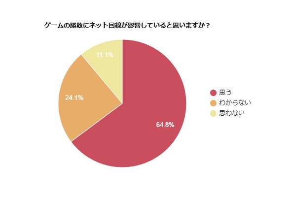 - 64.8%の人が「ゲームの勝敗にネット回線が影響する」と感じている