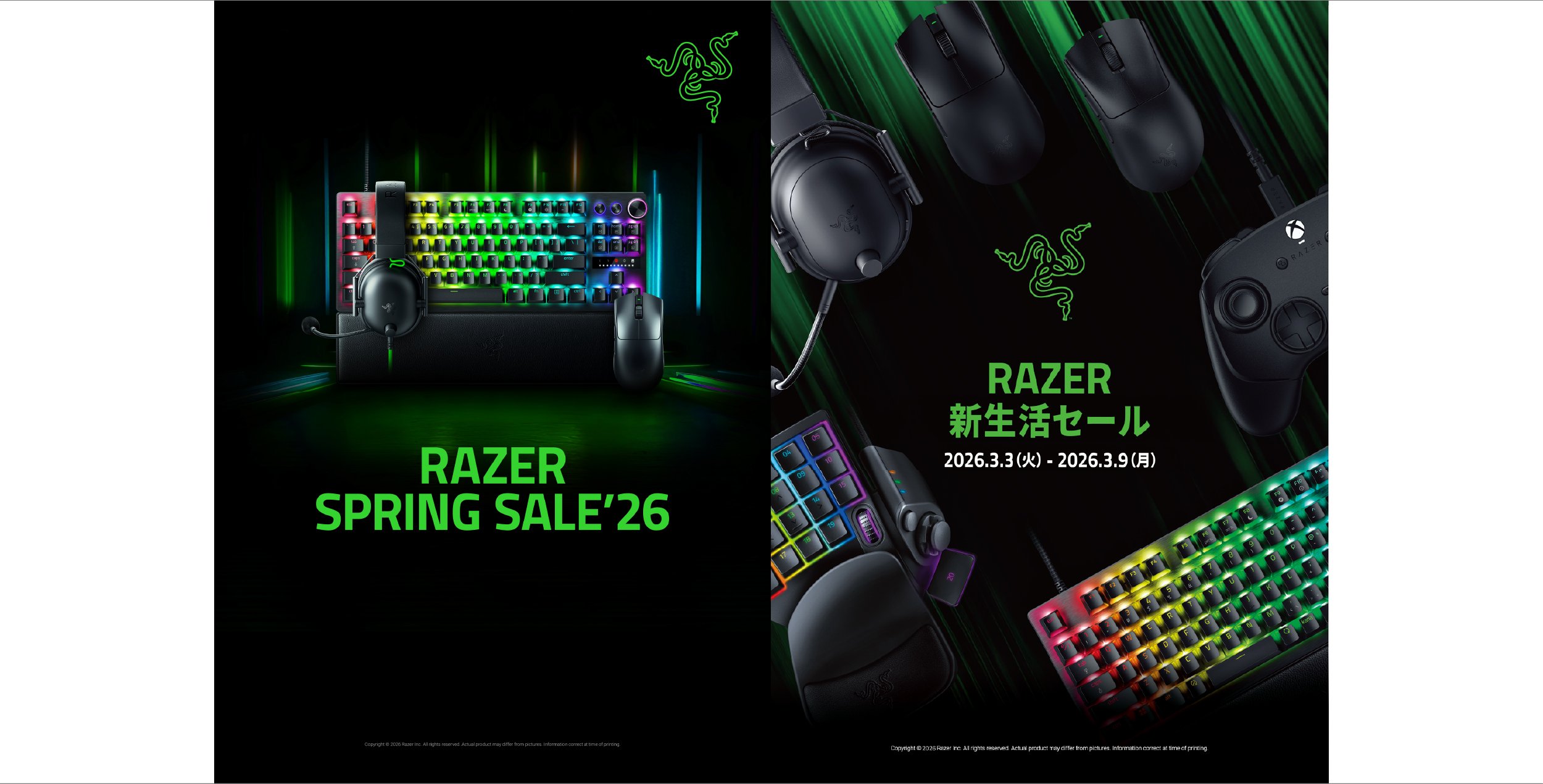 Razer Japan株式会社は、「Razer Spring Sale '26」(オンライン)および「Razer 新生活セール」(オフライン)を開催中。