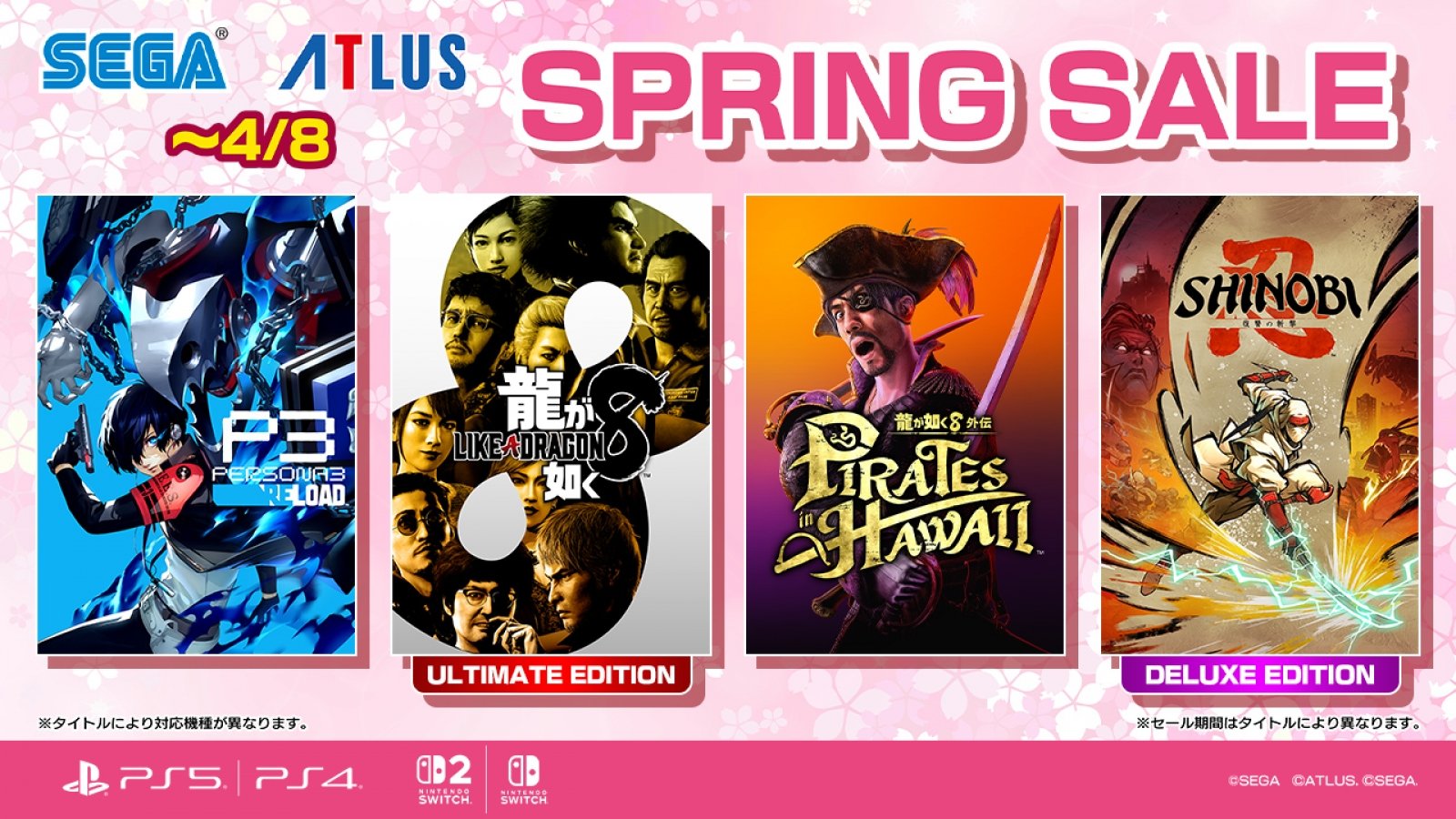 株式会社セガは、PlayStation™Storeおよびニンテンドーeショップにて販売中の一部PlayStation®5/PlayStation®4/Nintendo Switch™/Nintendo Switch™ 2用タイトルを対象とし、期間限定で特別価格にて販売する「セガ スプリングセール」を開催中です。