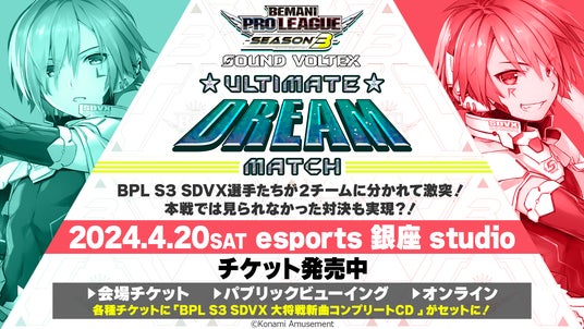「ファイナル」終了後『BEMANI PRO LEAGUE -SEASON 3- SOUND VOLTEX』の選手たちが2チームに分かれて戦う『BEMANI PRO LEAGUE -SEASON 3- SOUND VOLTEX ULTIMATE DREAM MATCH(ビーマニプロリーグ シーズンスリー サウンドボルテックス アルティメット ドリーム マッチ)』の開催を発表しました。