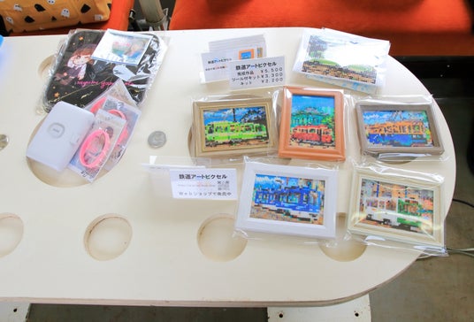 鉄道アートピクセルは函館市電の車両や風景をモチーフにしたビーズアート作品で "いよ夏" さんが製作・販売しています。完成品と自作キットのそれぞれが販売され、参加者の注目を集めていました。