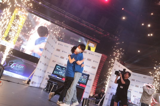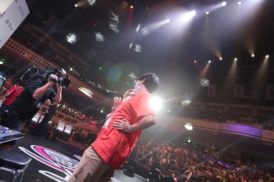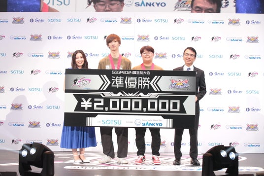 表彰式では、特別協賛の株式会社SANKYO東郷裕二 専務執行役員から手渡されたトロフィーを【横綱】チーム2人で大きく掲げ記念撮影。試合前に「2連覇取ります!」と意気を伝えたちゃんるい選手は「2連覇したので、自分たちが最強!」と喜びのコメントをした上で、「応援してくれた皆さまありがとうございました」と感謝を述べました。エンディングでは、熱い試合の数々にプレーヤーを称えるコメントとともに観客へのお礼をもって、GGGP2024 賞金制大会は幕を閉じました。