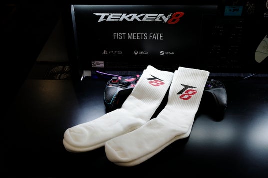 『鉄拳8』ブース内の8つの試遊台では、7月26日(金)に一般アクセス解禁を控える「リディア・ソビエスカ」が、一足先に体験プレー可能ということで順番待ちの長蛇の列が形成されることに。また、ブース来場者には、会場限定『鉄拳8』オリジナルソックスを配布しました。
