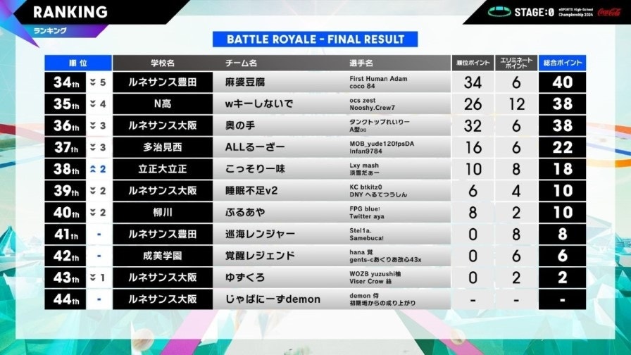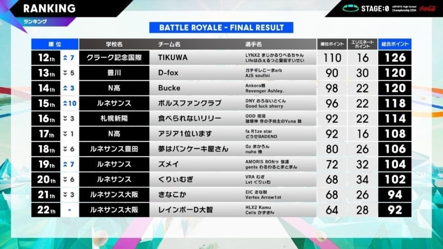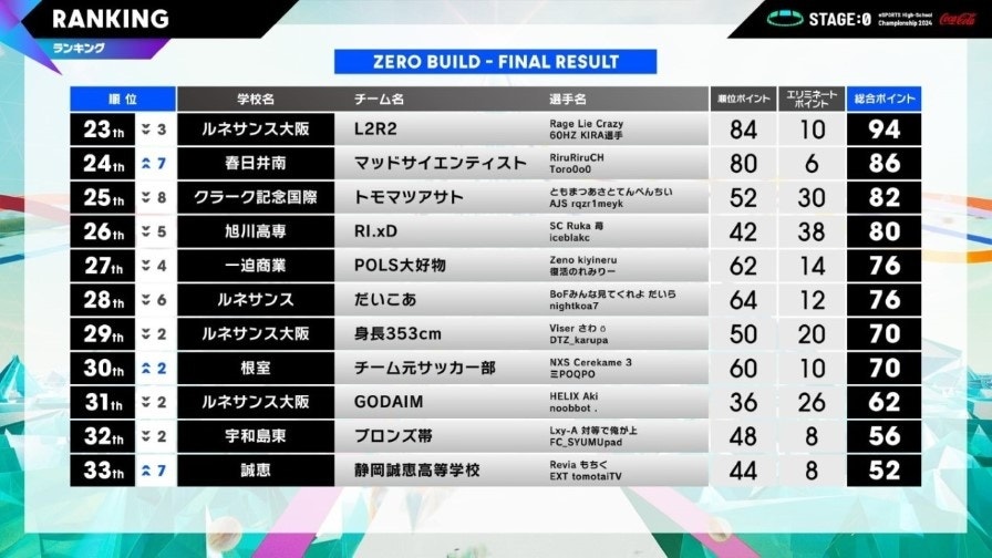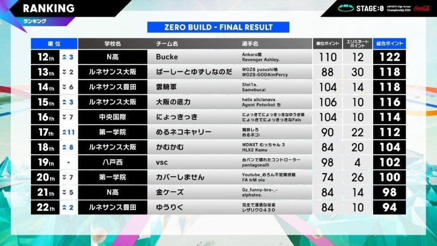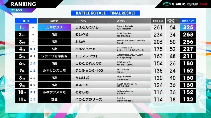 - STAGE:0 eSPORTS High-School Championship 2024 優勝・準優勝校