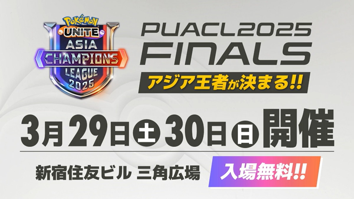 ポケモンユナイト アジア王者を決めるオフライン大会「PUACL2025 FINALS」を、新宿住友ビル 三角広場にて3月29日(土)・30日(日)の2日間に渡って開催いたします。両日ともに9時スタートで入場および観戦は無料です。