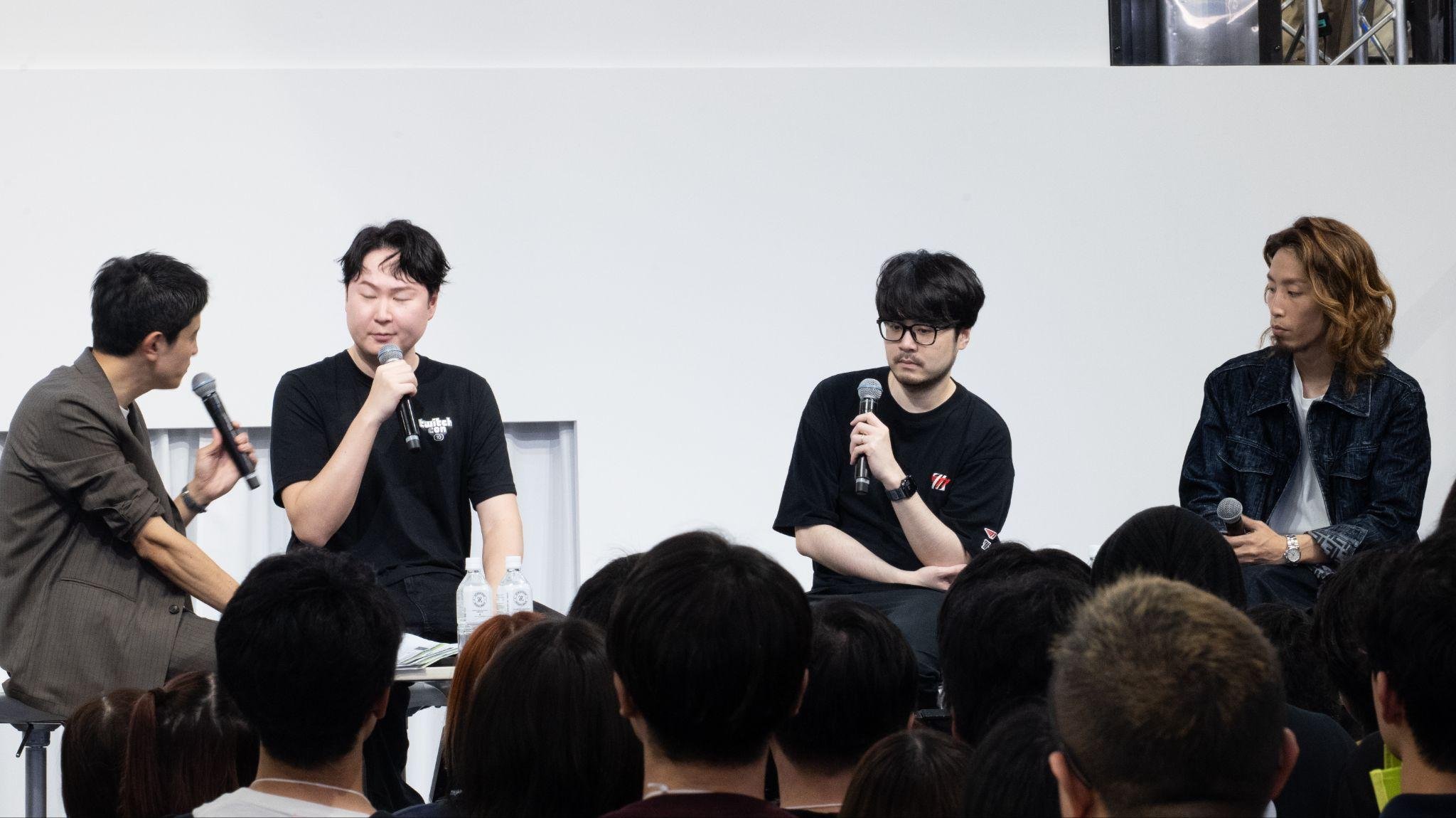 ▲左から篠原 光(MC)、noppo、k4sen、SHAKA。26日(金)に行われたトークセッションでは、数多くの観客がステージ前を埋め尽くした