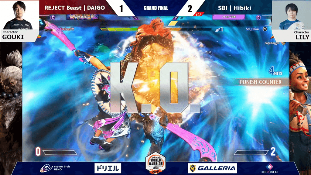 グランドファイナルは、ウイナーズファイナルと同じウメハラvsひびきというカード。ウイナーズで惜しくも負けたひびきだったが、ドライブラッシュからのコマンド投げなどでダメージを重ね、3-1でリセット。ウメハラが1セットをもぎ取るが、ひびきの勢いそのままに1-2で先にリーチ。しかしウメハラも冷静に立ち回り、ついに2-2のフルセットに。