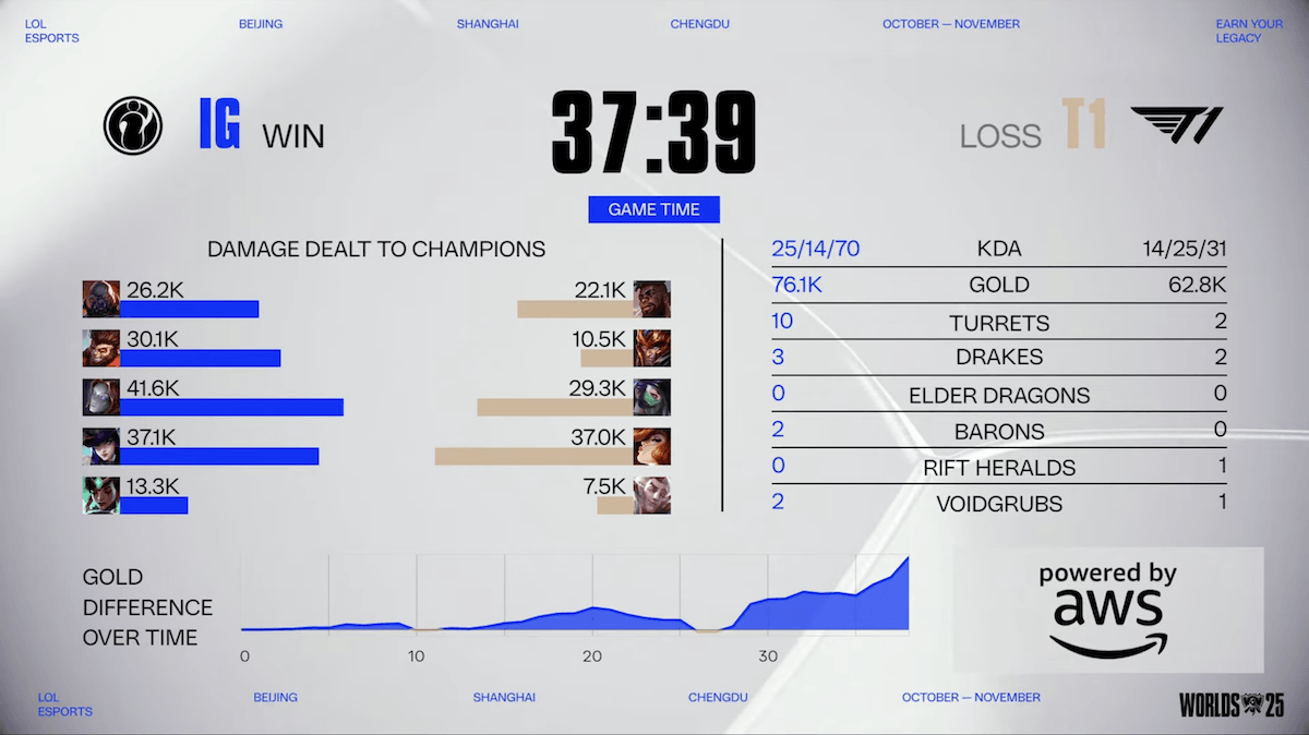 『リーグ・オブ・レジェンド』(LoL)の世界一を決める大会「Worlds 2025」が10月14日(火)に開幕。「プレーインステージ」では、T1とInvictus Gaming(iG)が対戦し、3-1でT1が勝利、「スイスステージ」進出を決めた。