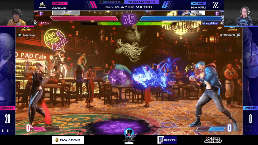 大将戦は全勝中のあでりい(エド)とひかる(A.K.I.)。ともに年代もキャリアも近いライバル同士であり、ひかるとしては昨年の所属チームでもある。ここまでで20-0のため、ZETAは勝っても不戦勝で試合自体は負けが確定しているものの、なんとしても20ポイントを持ち帰りたいところだ。