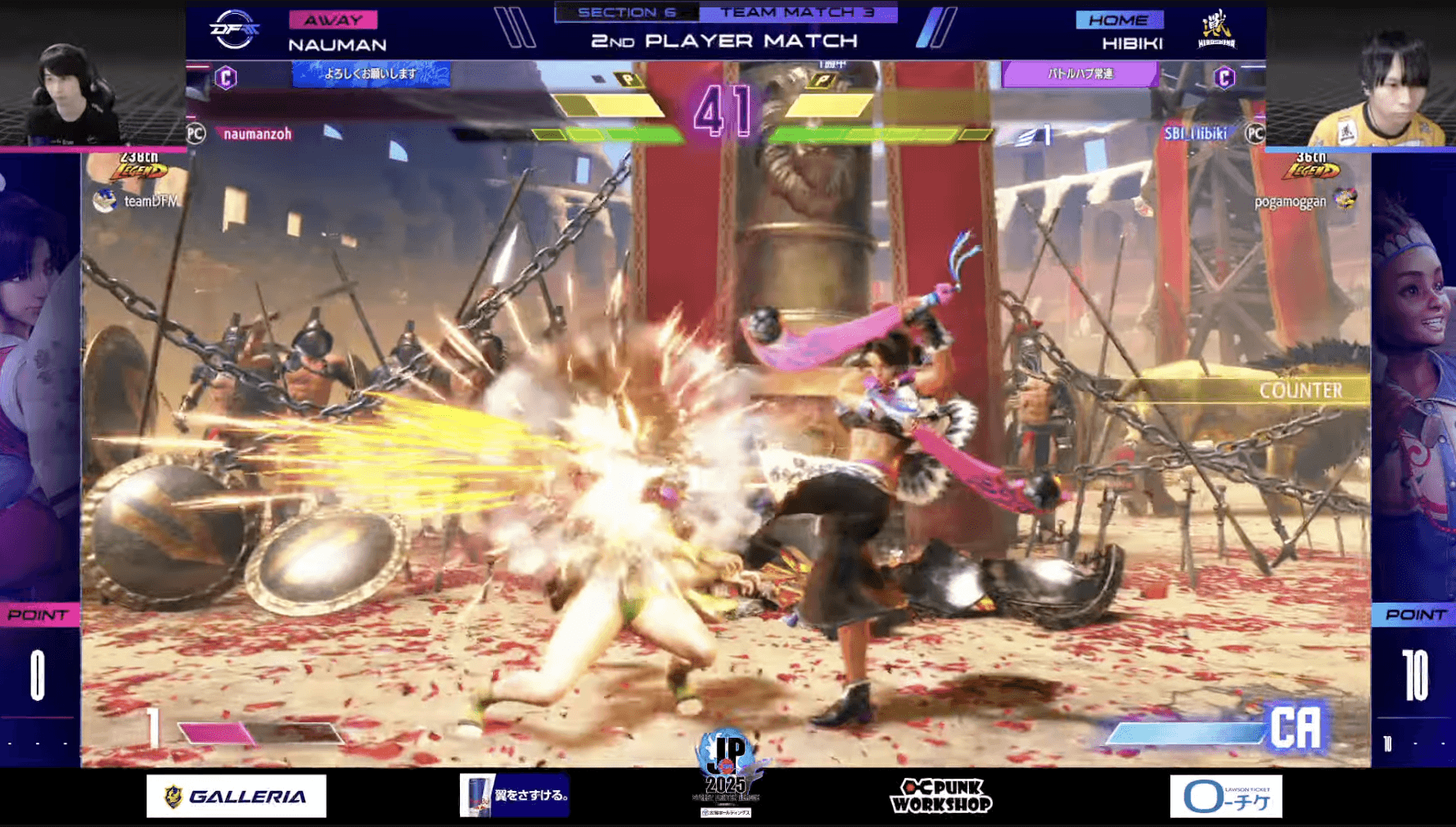 先鋒戦では、ふ〜ど(エド)にひかる(A.K.I.)が肉薄するも、最後はふ〜どが勝利。中堅戦は「EVO FRANCE 2025」での直接対決の再戦となったが、敗北したひぐち(ガイル)がウメハラ(豪鬼)にリベンジを果たす。