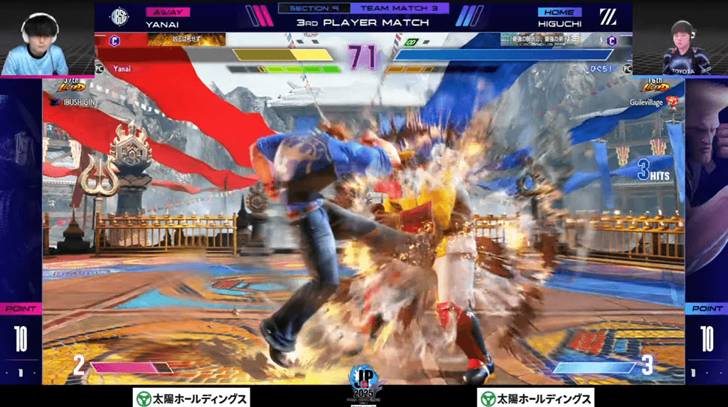 どちらにとっても絶対に取りたい大将戦は、ヤナイ(ベガ)とひぐち(ガイル)のカード。シーソーゲームは最終セットまでもつれたが、最後はラッシュ中段からSA3を決めてひぐちが勝利。ZETAがプレーオフ進出を自力で確定させた。