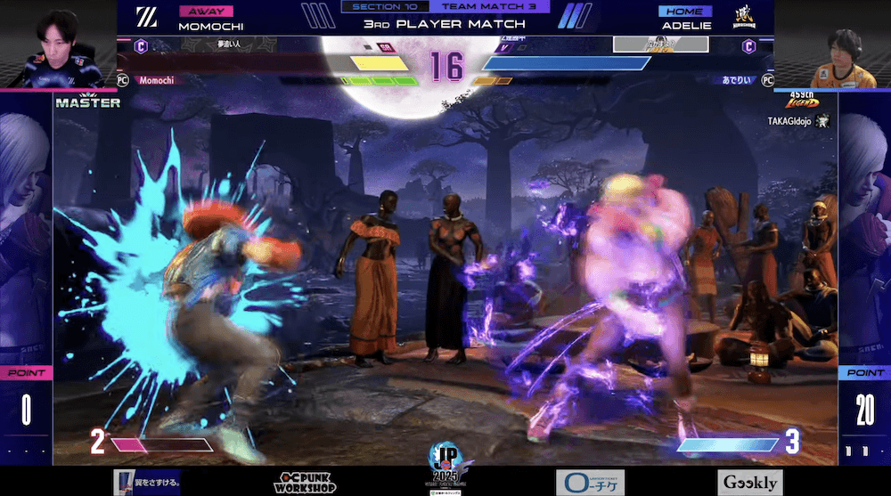 まさにボクシングのようなフェイントと殴り合いの展開となった大将戦。あでりい側が差し返しやジャストパリィなど、常にももちを上回る対応を続け、最後はももちのサイコフリッカーの溜めに対してドライブインパクトが炸裂。あでりいが勝利した。(https://www.youtube.com/live/hn17tmdaAzQ?si=qZfypN8XAb_m50iC&t=14455)