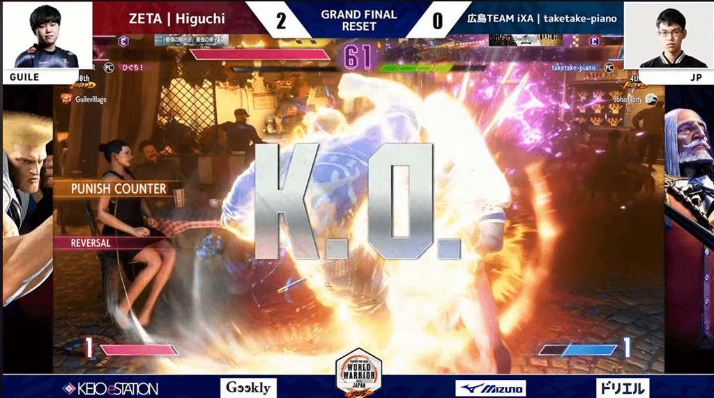 ひぐちは無敵対空技を持たないJPを相手にしたドライブラッシュや前ジャンプなどで、taketake-pianoに圧をかけ続ける。taketake-piano側は設置技で「安心感」を優先し、その分だけひぐちに時間を与えてしまったことで、逆に動きを規制されてしまったのかもしれない。奇襲にもODサマーソルトキックで反応するなど、この日のひぐちの仕上がり具合は圧倒的だった。(https://www.youtube.com/live/M4yEmSeqWhs?si=9uOMOjpvgJnZ-KSH&t=15031)