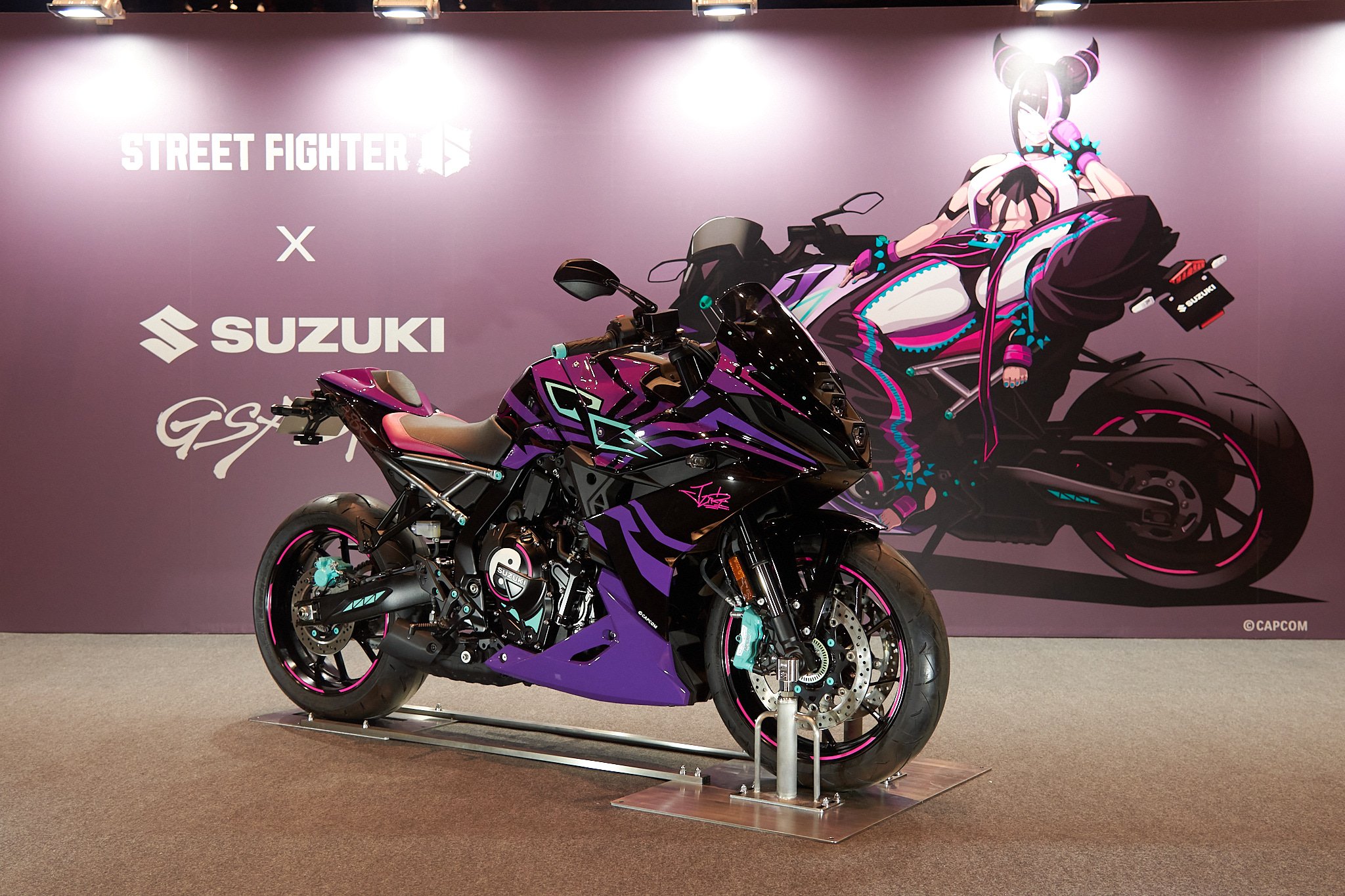 ▲スズキのブースでは、カプコンの人気ゲーム『ストリートファイター6』とコラボレーションしたバイクを展示。バイクにまたがって撮影することもできた
