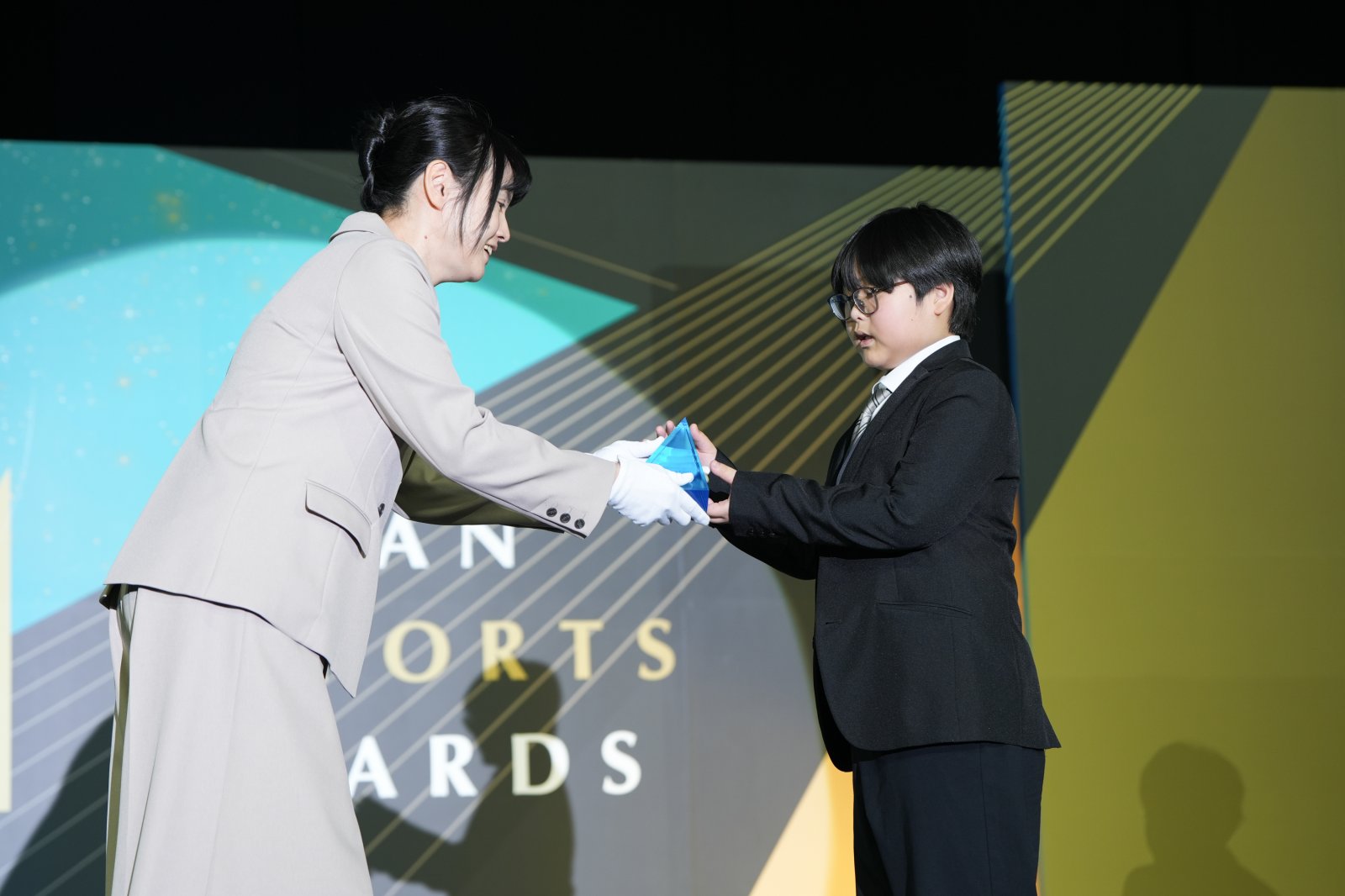 ▲ぷよぷよ界の天才プレーヤーゆうき選手。eスポーツ全国大会「全国都道府県対抗eスポーツ選手権」では、小学生の部で2連覇、オープン参加の部で初出場初優勝を飾るなど、数々の大会で優勝を果たしてきた。今回は「U18スポーツプレーヤー賞」に加え、「マインドゲームプレーヤー賞」をダブル受賞するという快挙を成し遂げた(出典:日本eスポーツアワード2025 ©︎JAPAN eSPORTS AWARDS)