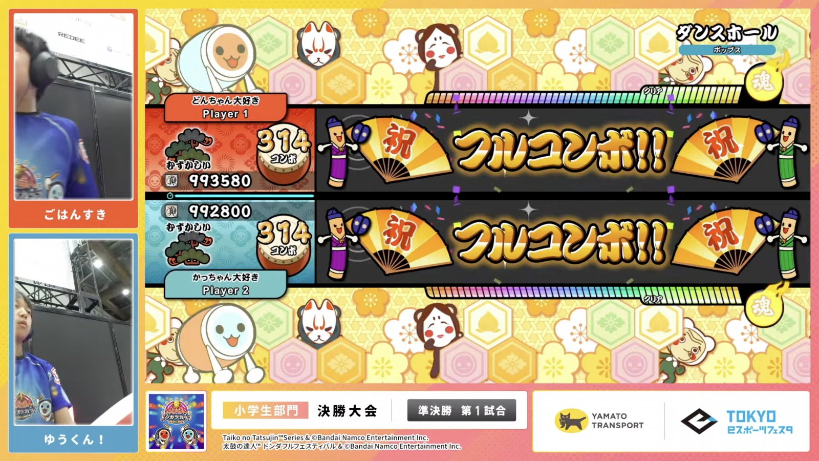 お互いフルコンボを決めるも、スコアの決定打になったのは連打数の違いとなり、最終結果はゆうくん!選手が初優勝に輝いた。