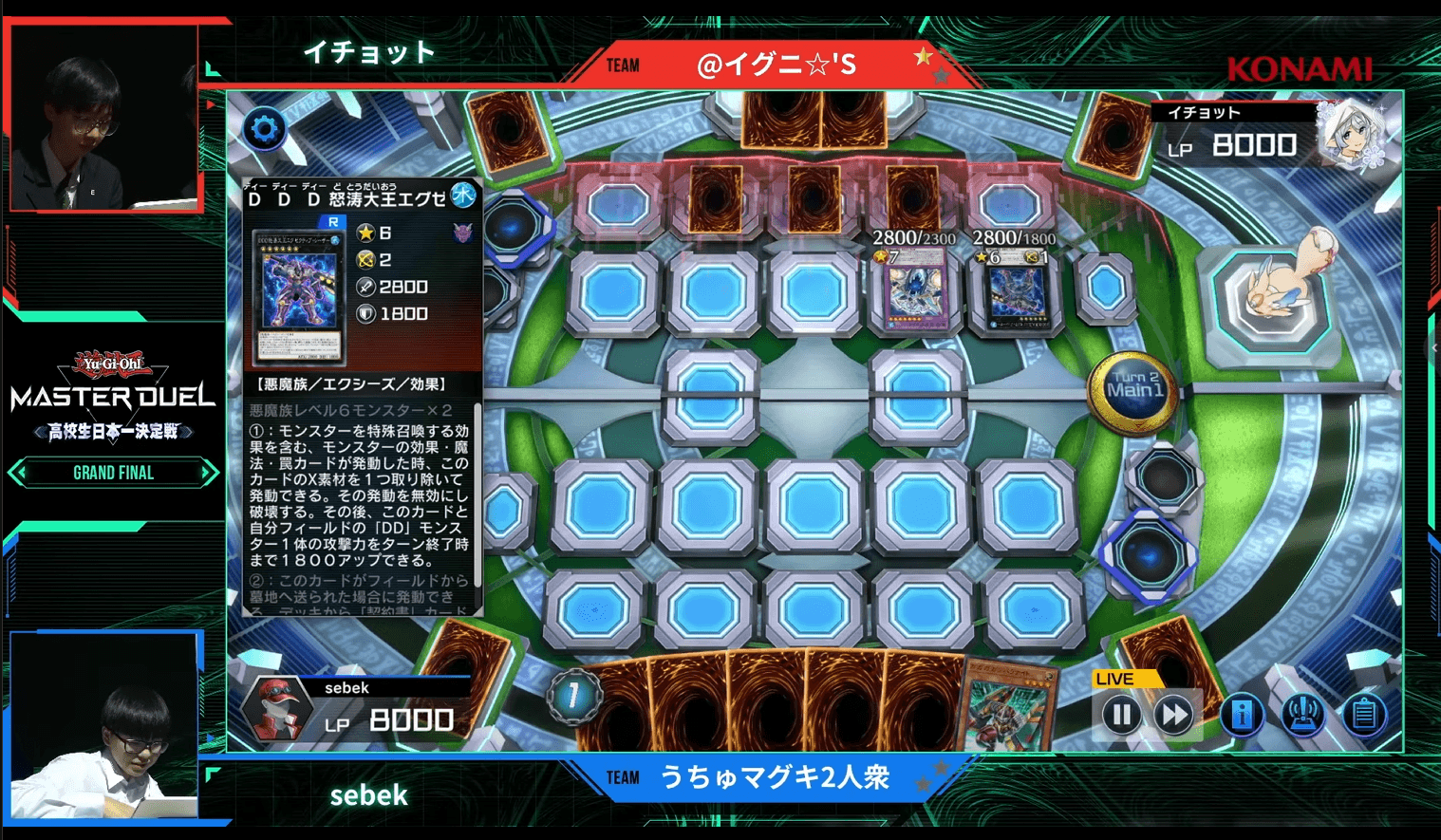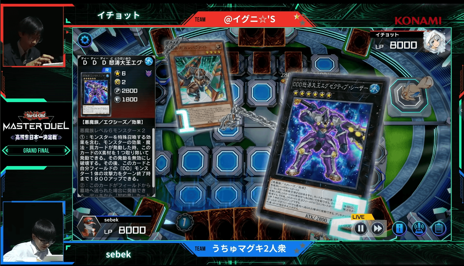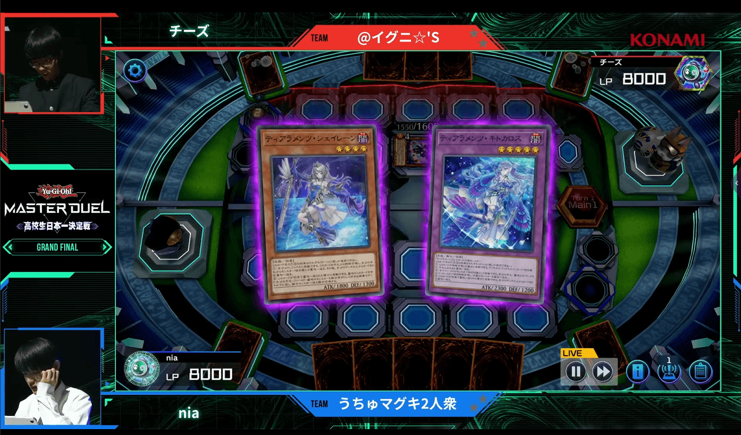 ここからは、『遊戯王 マスターデュエル』を始めて約1年で優勝をつかんだ「@イグニ☆’S」のイチョット選手・チーズ選手と、「うちゅマグキ2人衆」のsebek選手(セベック選手)・nia選手(ニア選手)による決勝戦をお届けする。