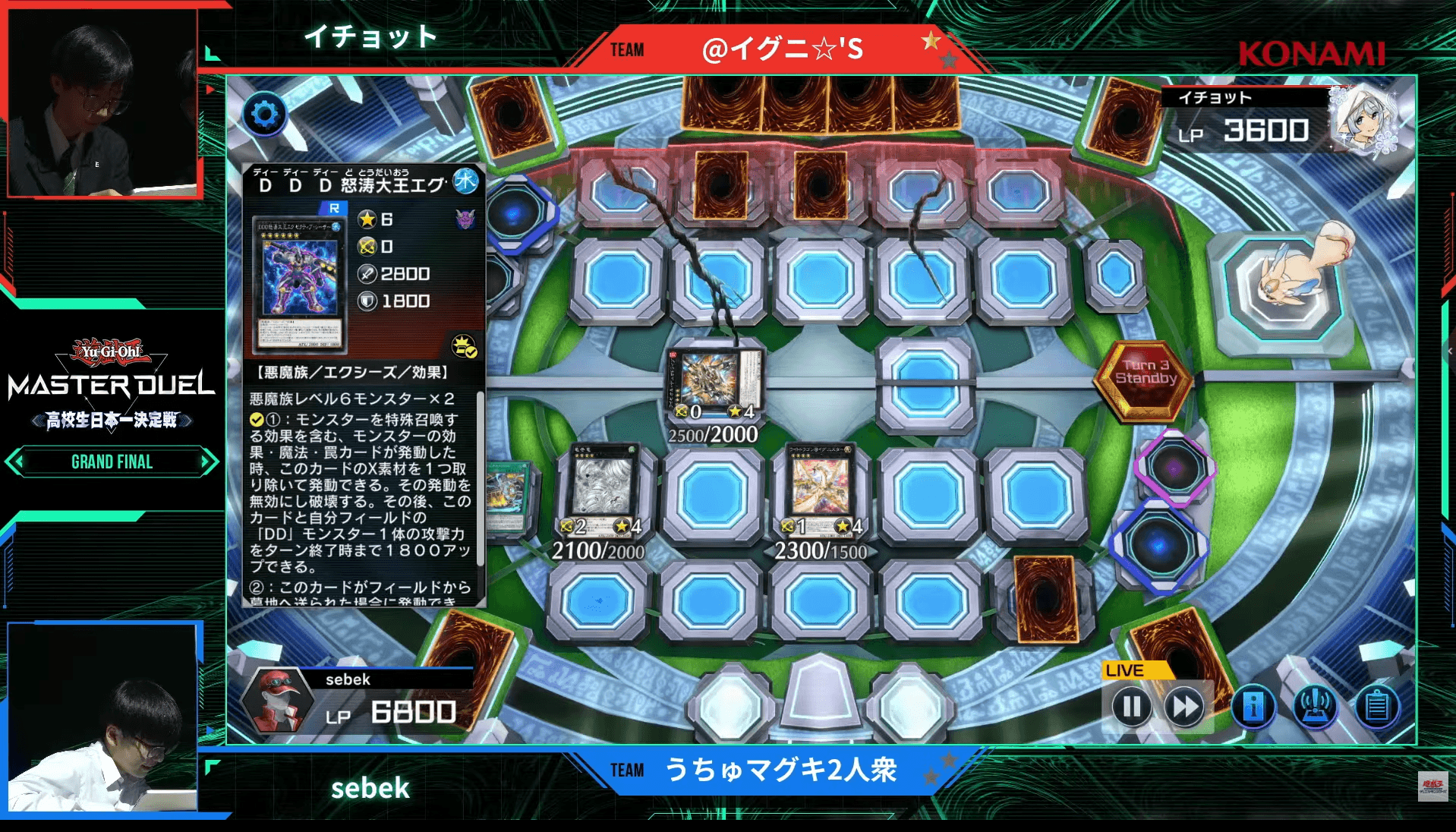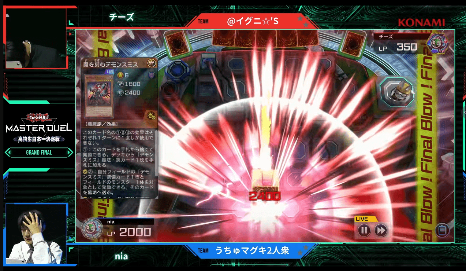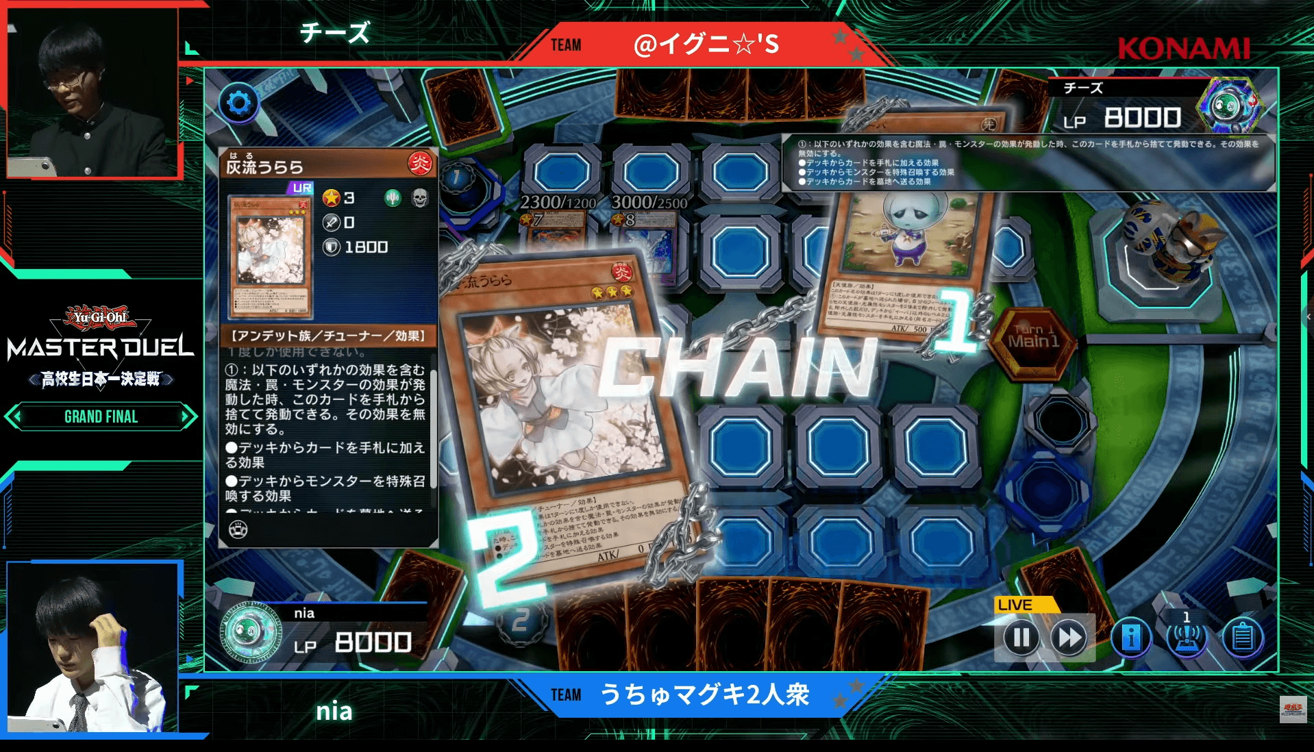 ここからは、『遊戯王 マスターデュエル』を始めて約1年で優勝をつかんだ「@イグニ☆’S」のイチョット選手・チーズ選手と、「うちゅマグキ2人衆」のsebek選手(セベック選手)・nia選手(ニア選手)による決勝戦をお届けする。