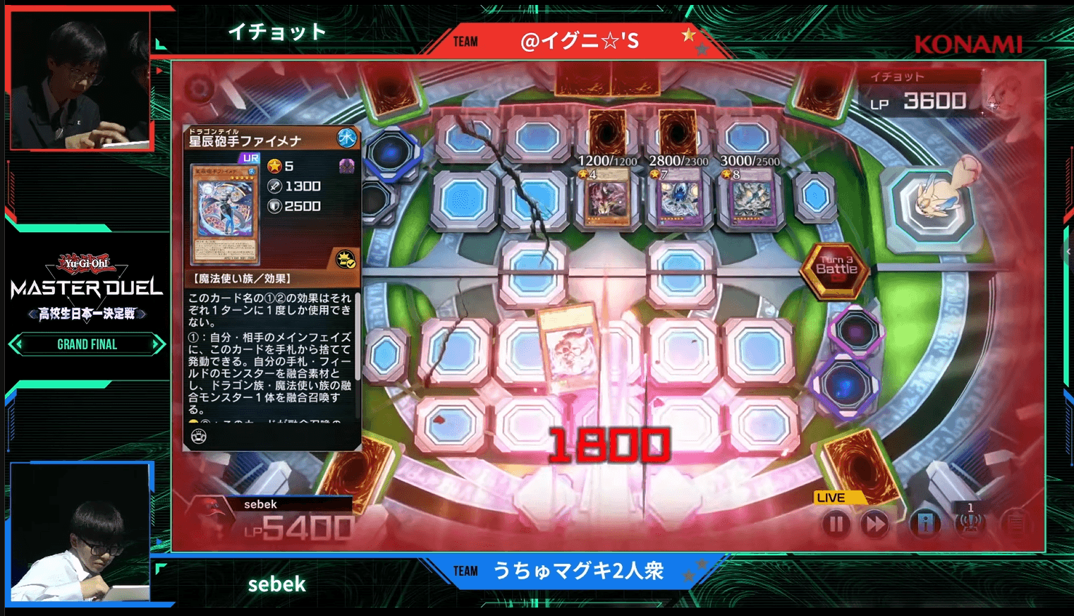 妨害を受けながらも、展開したモンスターたちで、sebek選手は総攻撃を仕掛ける。だが、この攻撃でイチョット選手のライフポイントを0にするには至らなかった。